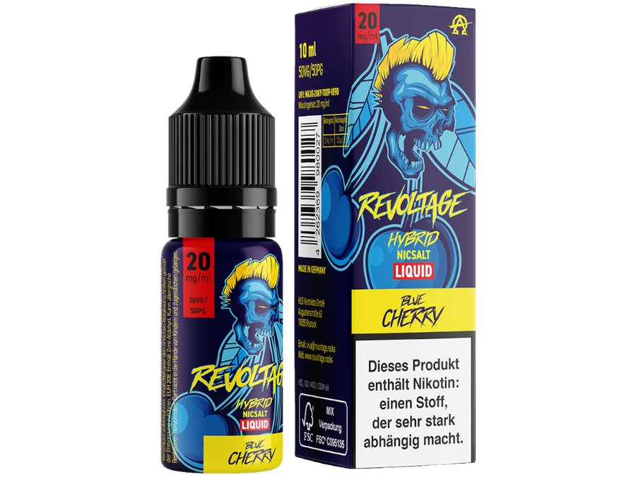 Mit dem "Revoltage Blue Cherry Hybrid Nic Salt E-Liquid" erleben Sie eine harmonische Verbindung aus süßen und sauren Fruchtnoten gepaart mit einem maßgeschneiderten Nikotingenuss – ideal für anspruchsvolle Dampfer auf der Suche nach einem besonderen Geschmackserlebnis!