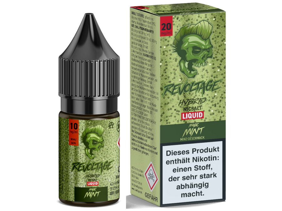 Entdecken Sie mit dem "Revoltage Magic Mint Hybrid Nic Salt E-Liquid" die magische Kombination aus kühler Minze und zufriedenstellendem Nikotingehalt – ein erfrischendes Erlebnis für jeden Dampfer!