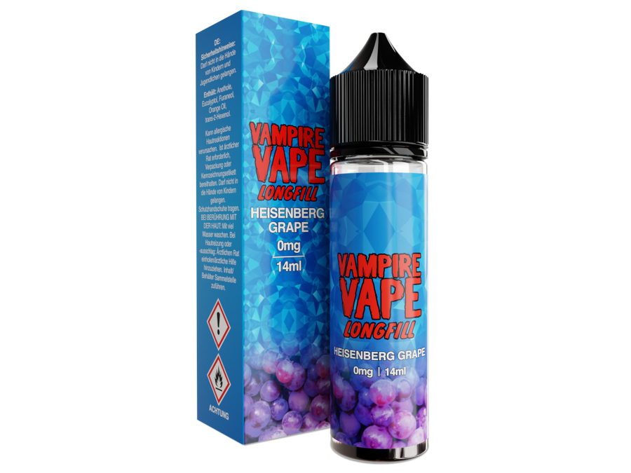 Heisenberg ist bekannt für seine einzigartige und schwer zu beschreibende Geschmackskomposition. Es kombiniert fruchtige Nuancen mit einem erfrischenden Unterton und einem Hauch von geheimnisvollen Kräutern und Beeren. Die exakte Rezeptur bleibt das wohlbehütete Geheimnis von Vampire Vape, was jedem Zug eine spannende Entdeckungsreise verleiht. In der Heisenberg Grape Variante kommt das Traubenaroma in den Vordergrund und verleiht dem Aroma eine fruchtigere Note.